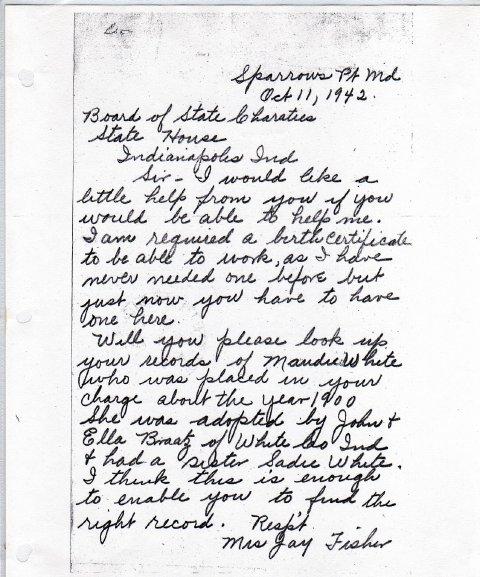 Although the following items may appear confusing, they document the lives of these two girls from home to home. In later life, these letters show Sadie attempting to gain information for employment and Maude and Jay Fisher's search for Maude's sister. Also found here are the pitiful letters that the birth mother wrote in search of her daughters. The letters were addressed to the postmaster in hopes that he could find the girls for here. You will find enclosed also letters from the postmaster in his refusal to become involved.
