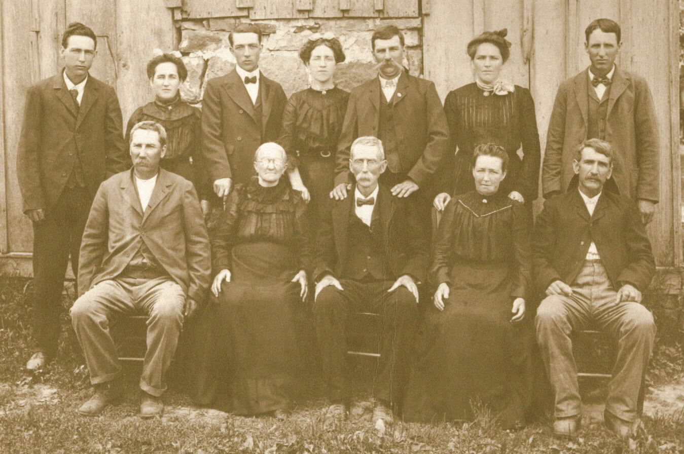 This is the family of James Merrit Noel b. 8 Jul 1836 Washington Co.KY m. Elizabeth Hall b. 13 Feb 1838 Shelby Co.KY {my 3rd GGrandparents} Back row L: Carlin Noel b. 9 Aug 1876 IN America Veach Noel b. 3 Feb 1858 IN Alva Noel b. 20 Nov 1878 IN Stella Noel b. 19 Jun 1881 IN Isaac W. Noel b. 13 Mar 1866 IN Ida Noel b. 6 Aug 1868 Owen Co.IN Merrit Noel b. 5 Feb 1863 IN Front row left: James Henry Noel b. 24 Mar 1854 KY Eliza Hall .....mother James Merrit Noel....father Mary Jane Noel b. 27 Dec 1855 KY and George Alexander Noel b. 20 Oct 1860 Orange Co.IN {my 2nd GGrandfather} Posted By: Nancy White