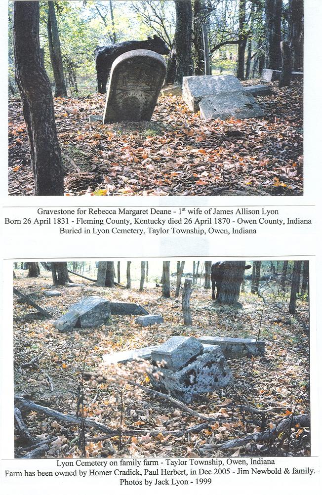 Cemetery Photo I thought that it would be nice to have all the general cemetery photos together. The specific gravestone photos are still under the tombstone section.If you have any from your cemetery trips, please submit them. This page last updated June 5, 2009 Hicks Cemetery 1 Hicks Cemetery 2 Contributed by Nancy White Big Rock/Burkett Cemetery Contributed by: Jacqueline Truax Jones Scott Cemetery 1 Scott Cemetery 2 Contributed by Nancy White Old Little Mount Cemetery Contributed by: Jacqueline Truax Jones Bethlehem Cemetery 1 Located in Jefferson Township, Morgan County. Contributed by Dian Trace Old Mount Olive/Fairview Cemetery Located in Jefferson Township of Morgan County Contributed by Mary Shannon Herbert Cemetery Located inside Lieber State Park Jackson Township, Owen County. Contributed by Debbie Jennings Lyon Cemetery Located on the property of Jim Newbold Taylor Township, Owen County. Contributed by Claire Field Marion Cemetery 1 Marion Cemetery 2 Marion Township, Owen County Contributed by Carol Lindamood Pleasant Bethel Cemetery Marion Township, Owen County Contributed by Carol Lindamood Ratts Cemetery Ashland Township, Morgan County May 2008 Contributed by Connie Pence