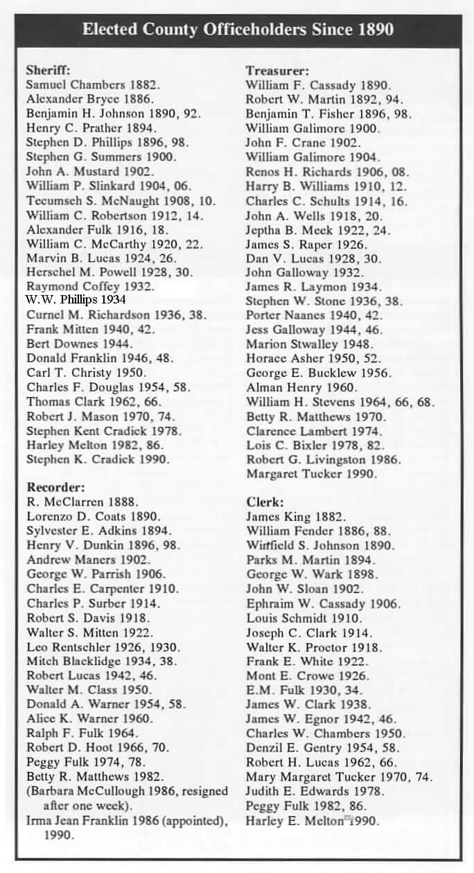 Early These are listings of the men who held various offices in the early days of Owen County.