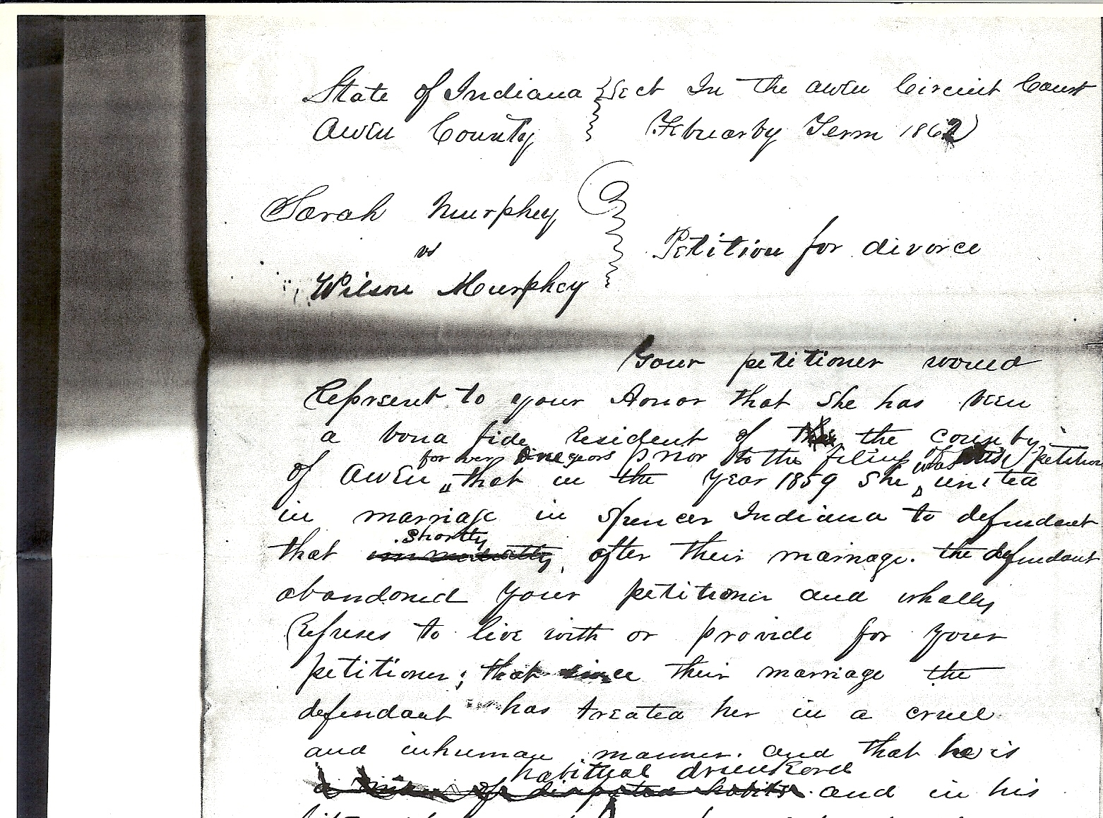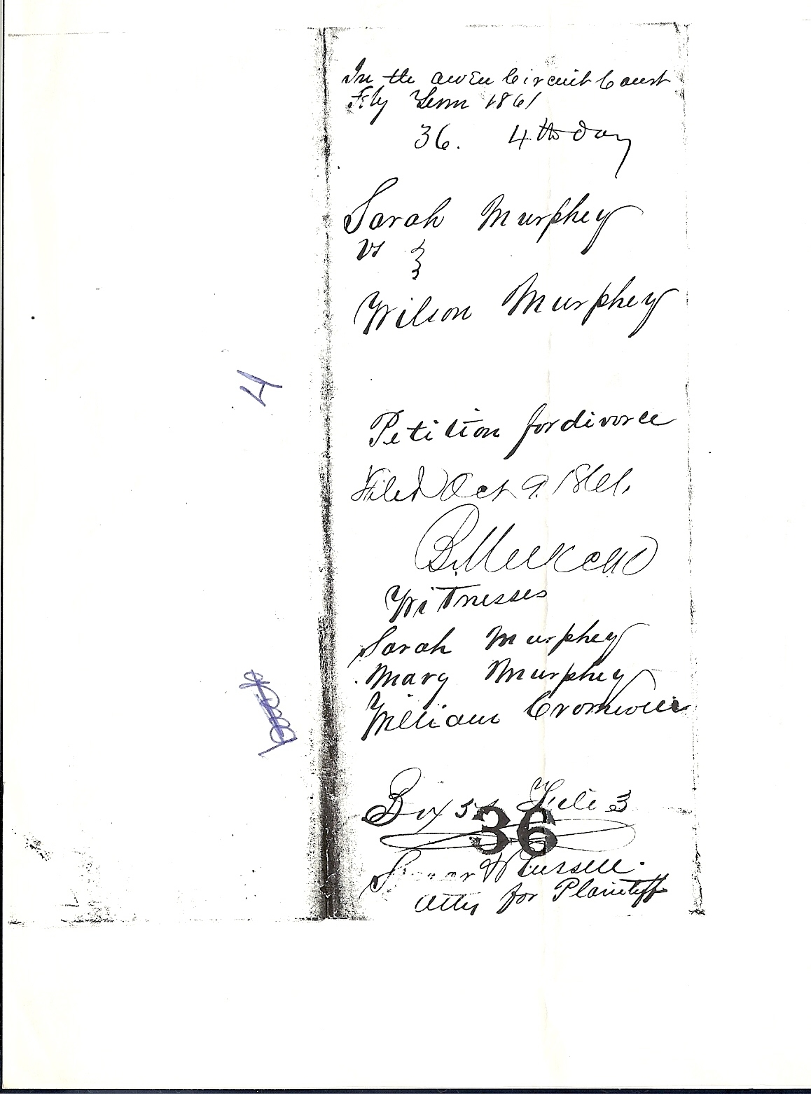 Wilson & Sarah Murphy Divorce 1863 page 1