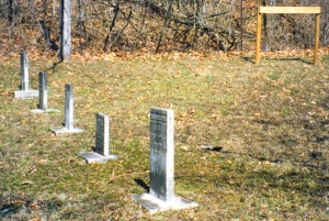 From courthouse in Martinsville go 3.6 miles north on North Main Street/Blue Bluff Road. Cemetery is on right side of road to left of levee.