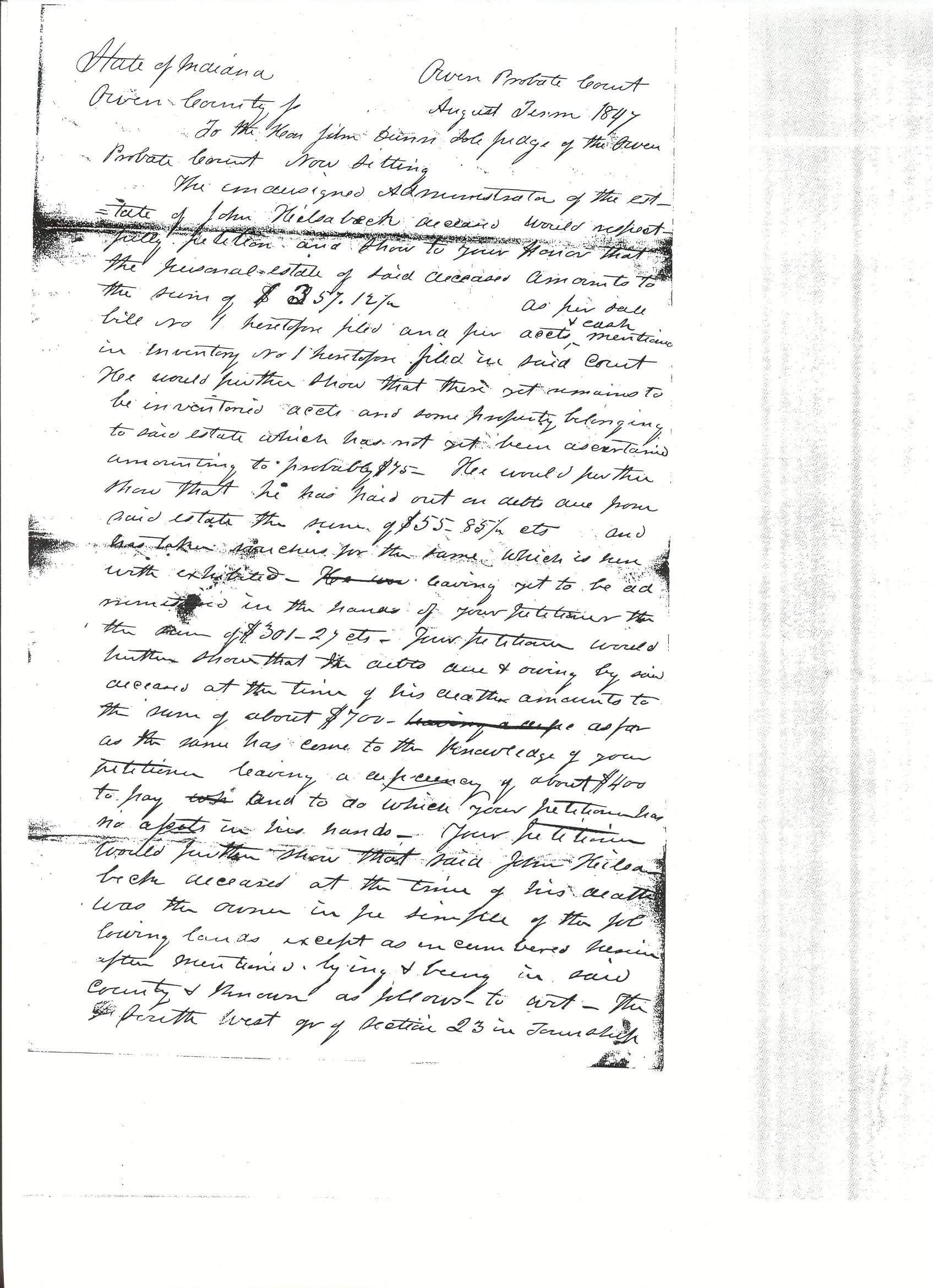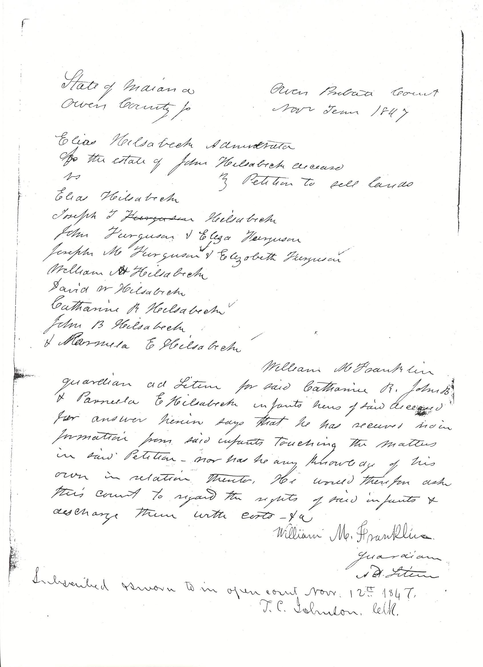 John (Johannes) Hilsabeck was the 5th child, 2nd son, of Revolutionary War soldier Jacob Hilsabeck (of NC). He and wife Catharina Fulk migrated from Stokes Co, NC to Owen Co, IN with their 11 children between 1828 and 1830.