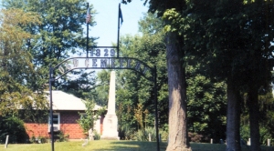 North side of West Washington Street west of Indiana Street. Some stones are down and broken; vault tops smashed (ca. 1998). This was originally the site of the Mooresville Methodist Episcopal Church.