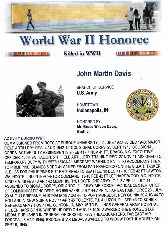 Bronze Medal Citation & Military Service of John M. Davis