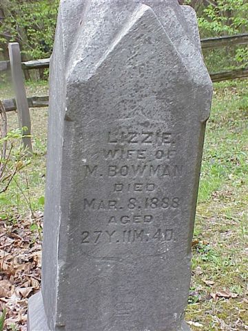 1. Gravestone of Lizze Herbert; First wife of Francis Marion Bowman