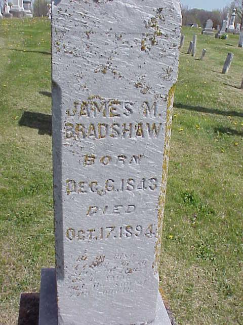 Description: Headstone of James Bradshaw; s/o Alexander P. & Elizabeth (Allison) Bradshaw