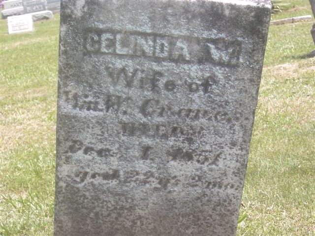 1. Celinda Crane Gravestone Wife of Wm. Crane Place Taken: Pleasant Cemetery