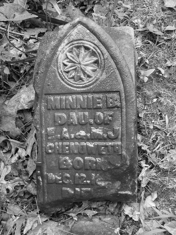 1. Minnie B. Chenoweth Gravestone So sad that these stones are in this condition. Place Taken: Little Mount Cemetery