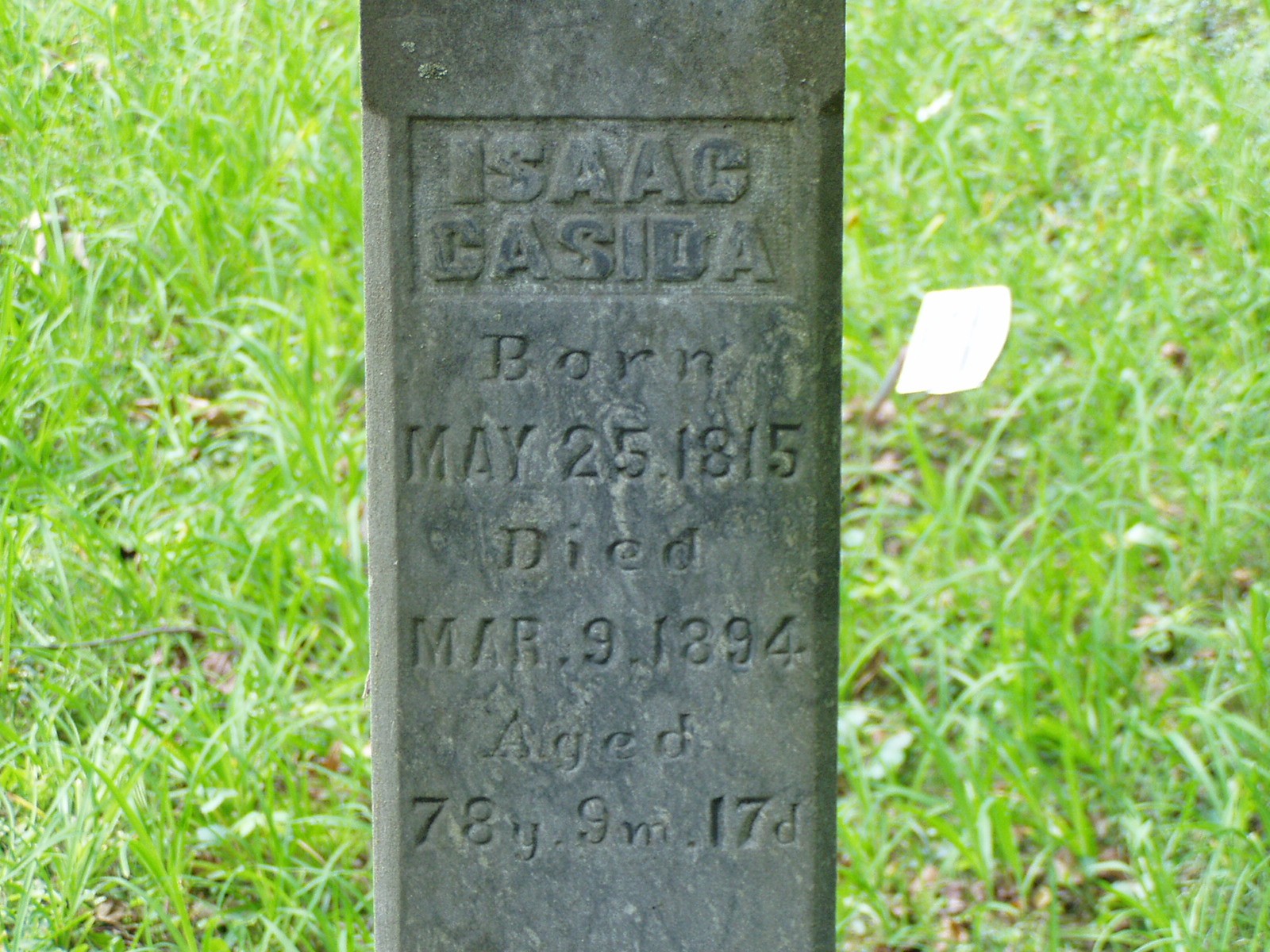 2. Isaac Casida Gravestone Son of Isaac Casada Sr. of Wayne County Kentucky Place Taken: Pleasant Grove Cemetery
