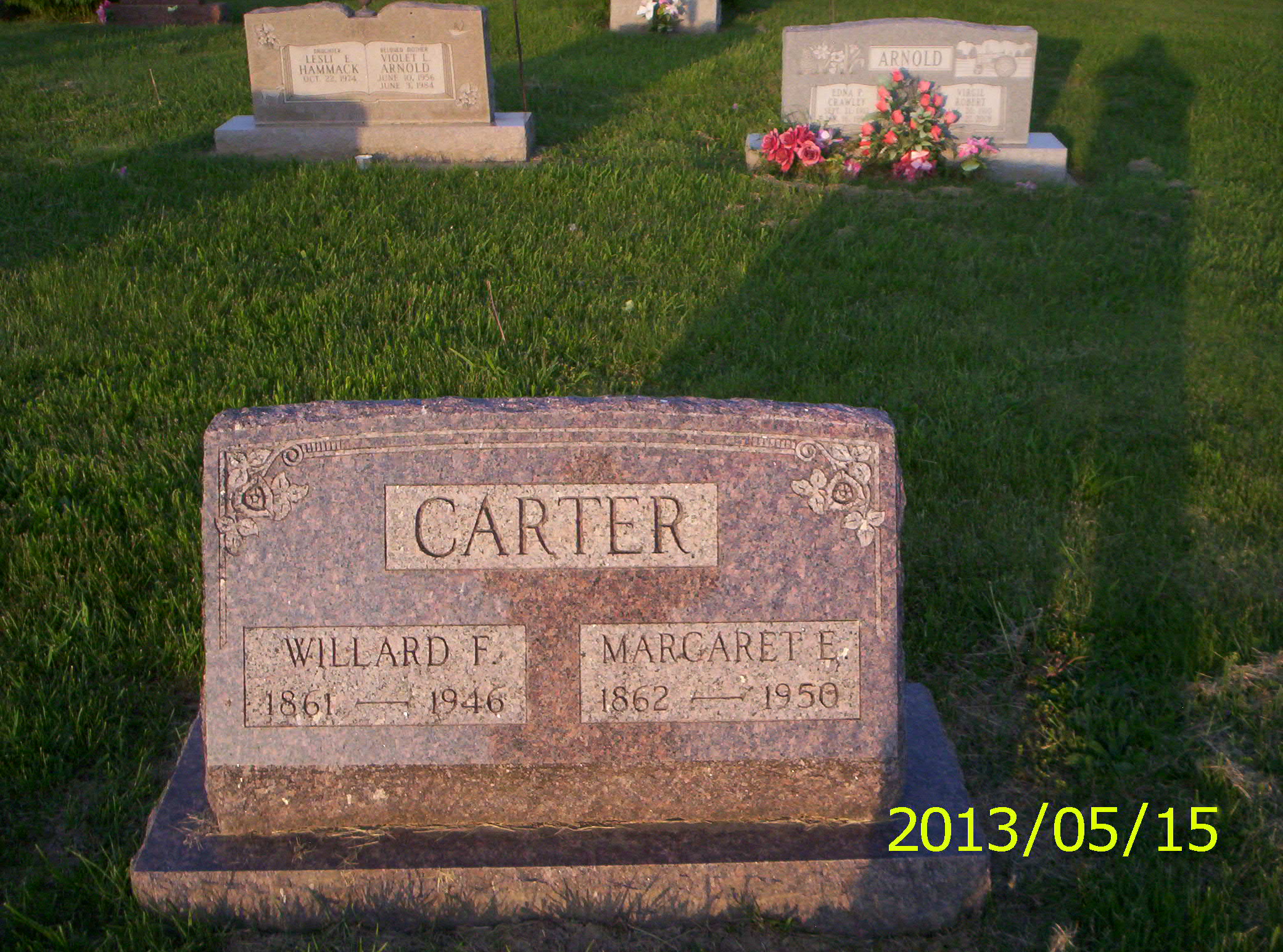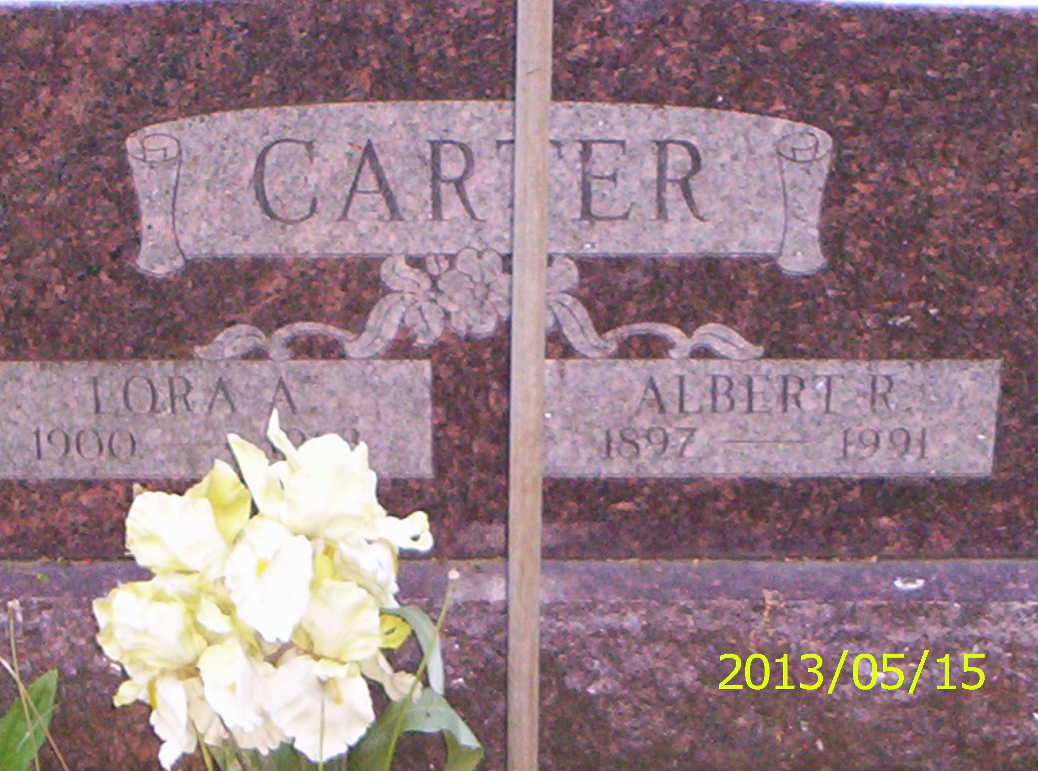 5. Albert & Lora (Bloucher) Carter Gravestone Albert was the son of Everett Carter & Nancy Ratts. Lora was the daughter of Benjamin Bloucher & Sarah Myers. Place Taken: Samaria Cemetery