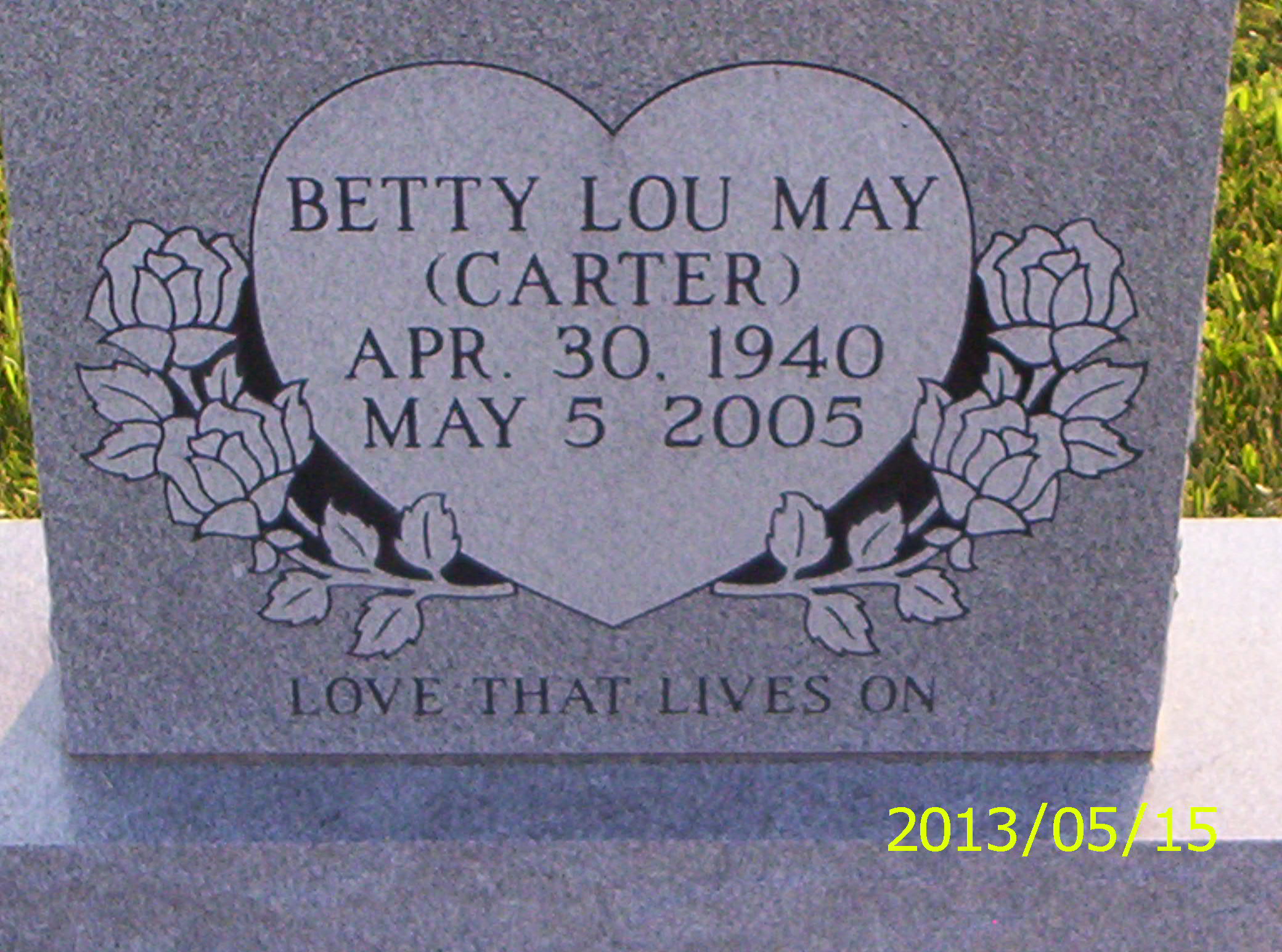 9. Betty Carter May Gravestone Betty was the daughter of Herschel Carter and Floy Lockhart