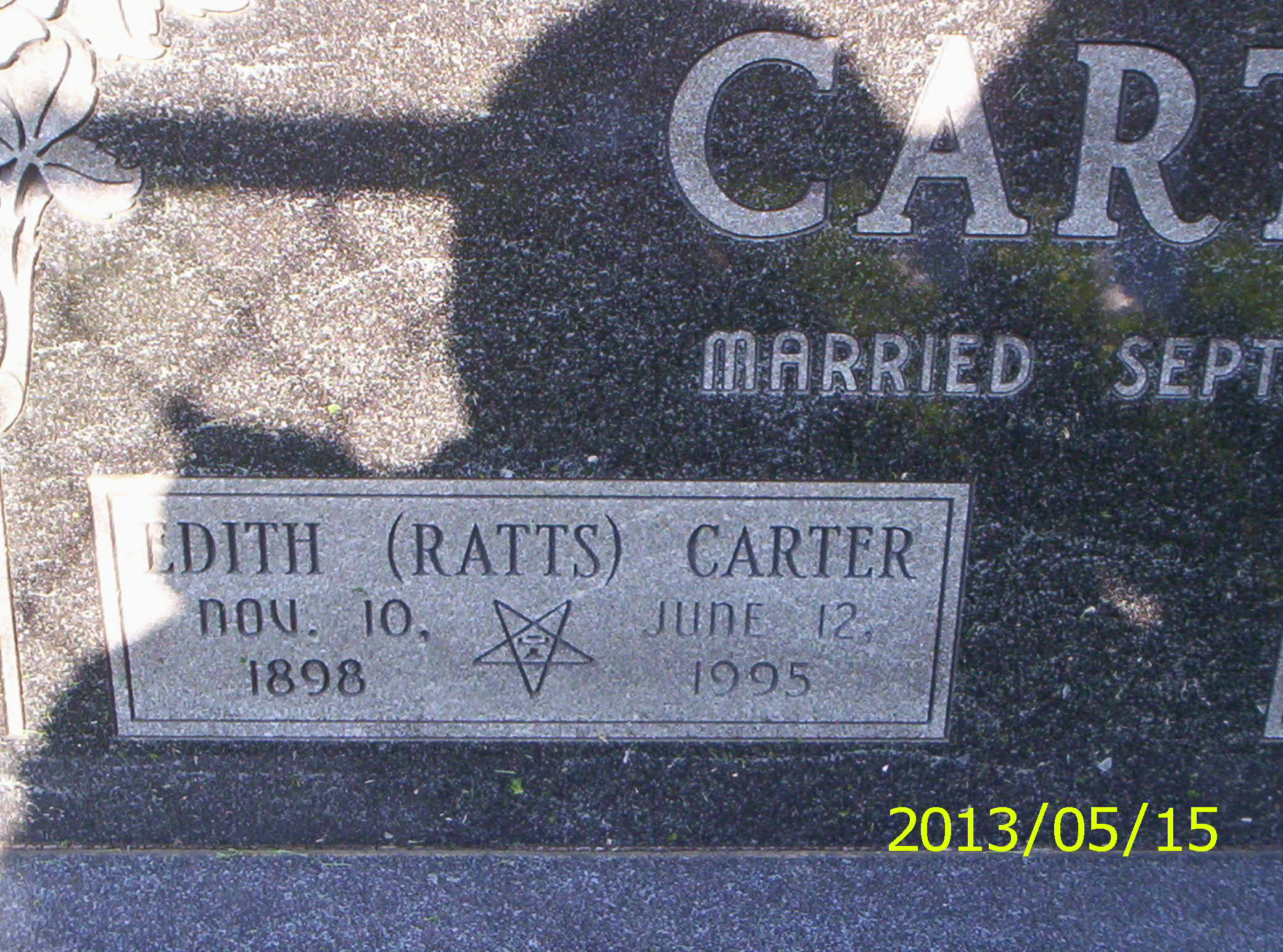 6. Elzie Carter Gravestone Elzie was the son of Sylvester Carter & Rachel Crank. He married Edith Ratts on September 8, 1917
