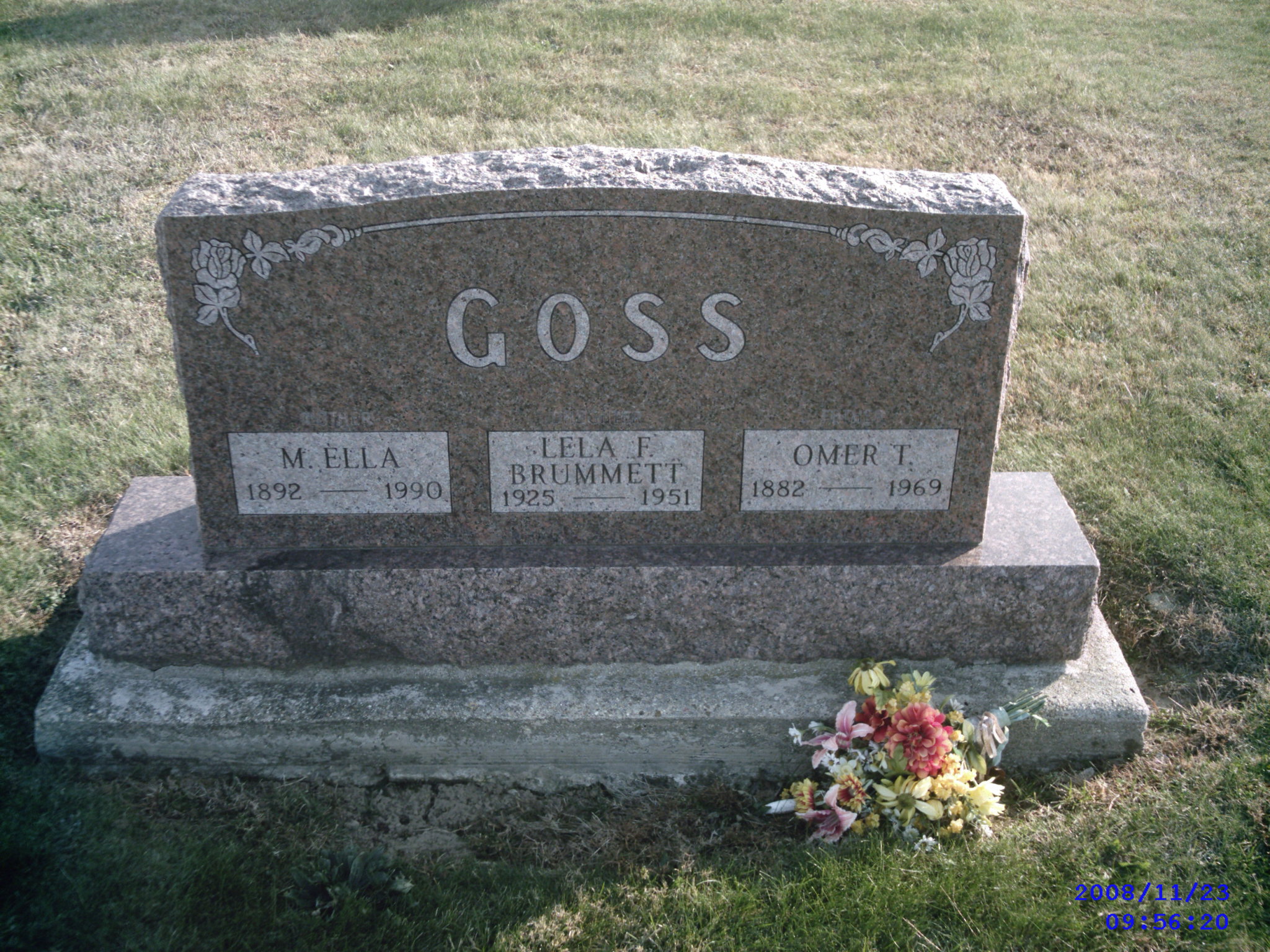 1. Omer T. Leila (Brummett)Goss & M. Ella Goss Gravestone