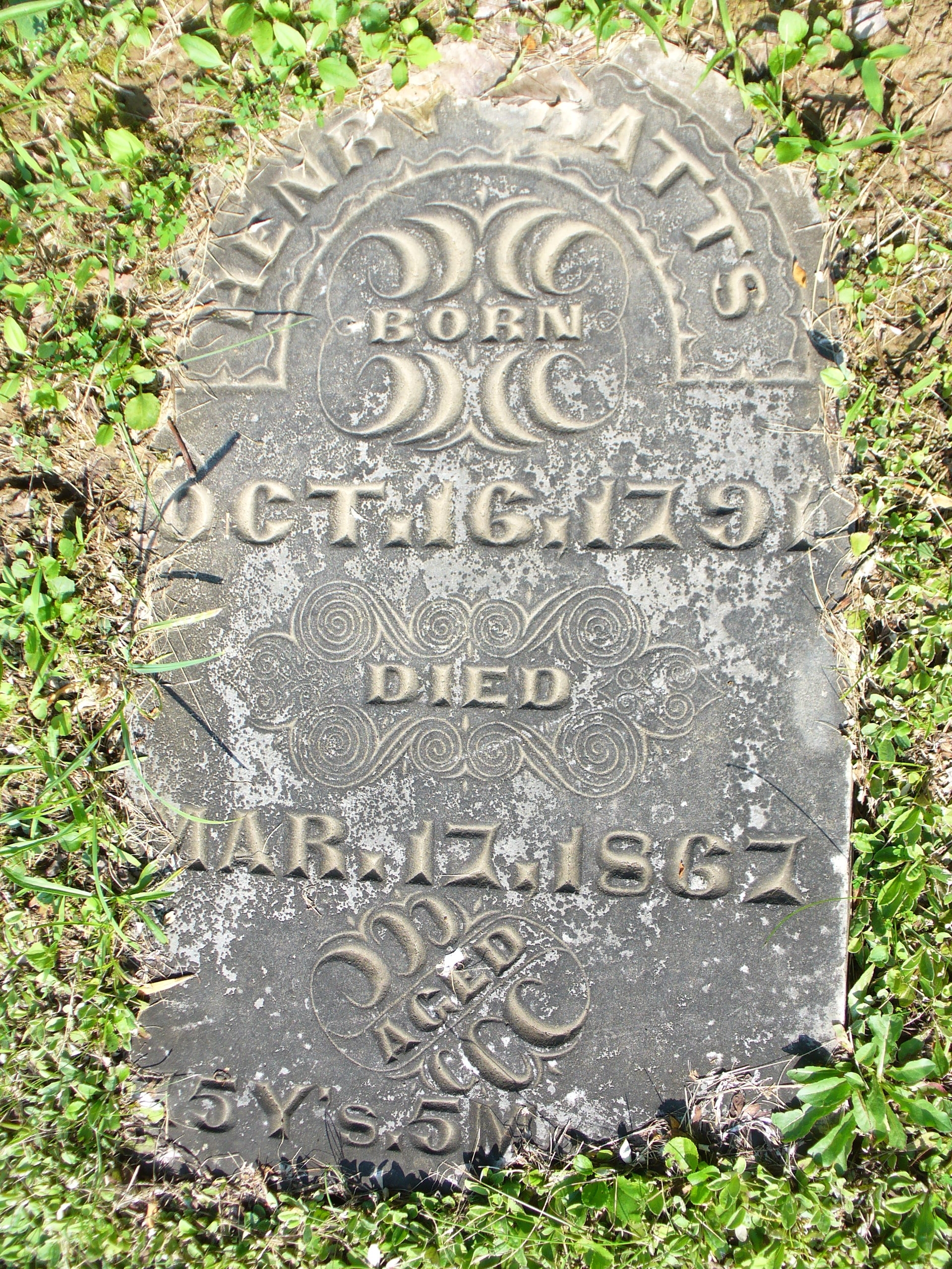 2. Henry Ratts Tombstone (Oct 16 1792-Mar 17 1867) Husband of Rebecca Goss